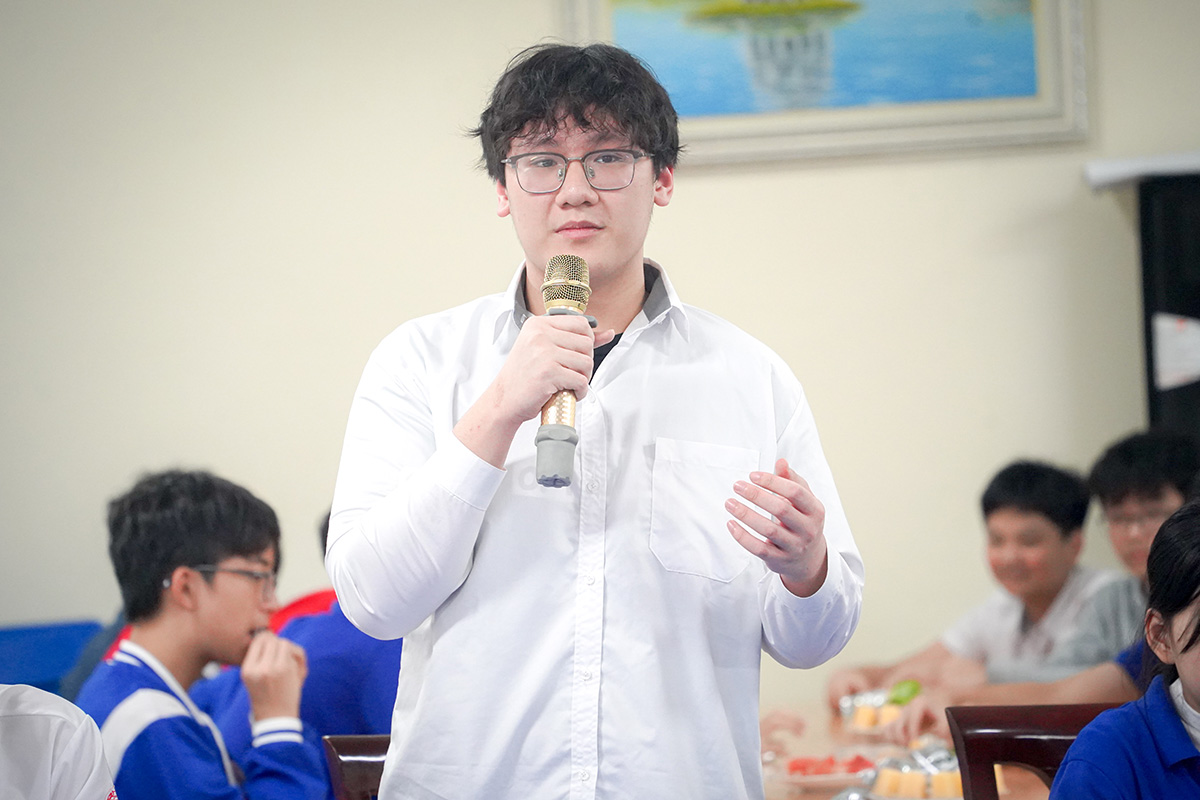 Lan tỏa tinh thần chia sẻ, học sinh Phan Lê Nguyên (11D0) – đại diện đội tuyển học sinh giỏi cấp THPT vừa đạt thành tích tại kỳ thi Thành phố – đã gửi đến “đàn em” những kinh nghiệm quý báu: giữ tinh thần tự tin, tận dụng tốt kiến thức đã được học, đồng thời có chiến lược phân chia thời gian hợp lý cho từng câu hỏi.