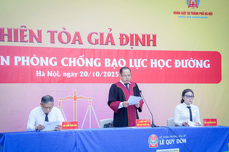 (LQĐ)Nhằm nâng cao nhận thức pháp luật, xây dựng ý thức tôn trọng và tuân thủ pháp luật trong môi trường học đường, ngày 20/10/2025, Trường THCS-THPT Lê Quý Đôn phối hợp cùng Đoàn Luật sư Thành phố Hà Nội tổ chức chương trình tuyên truyền, giáo dục pháp luật về phòng chống bạo lực học đường bằng hình thức phiên tòa giả định.