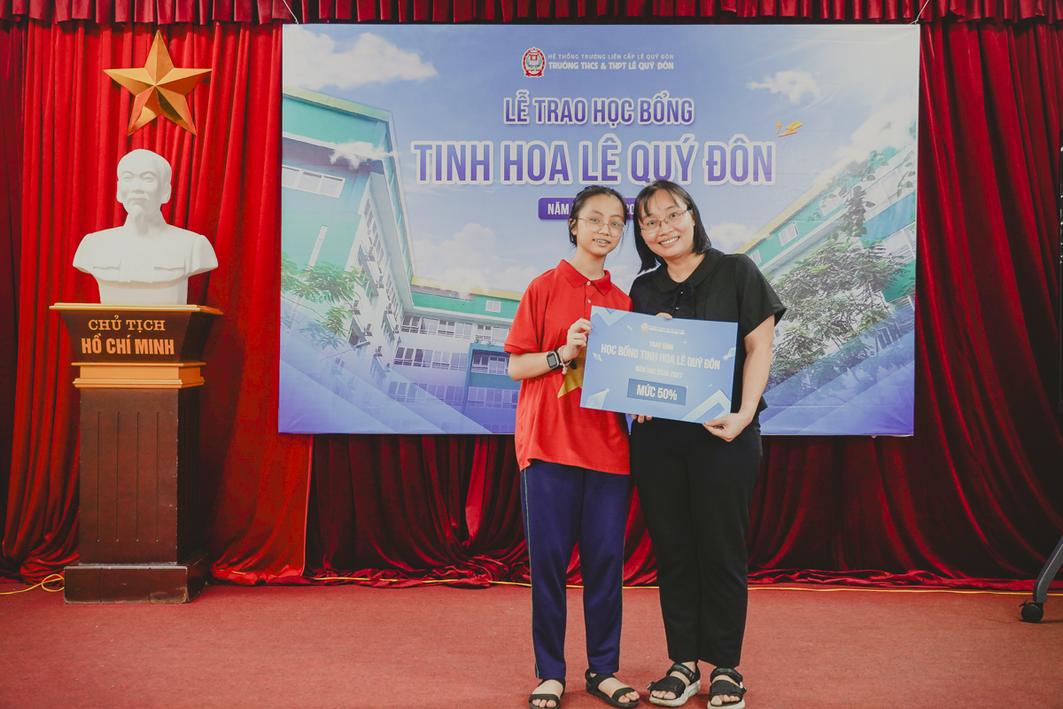 “Học bổng Tinh hoa Lê Quý Đôn không chỉ là sự ghi nhận thành tích học tập, mà còn là cam kết của Nhà trường trong việc đồng hành cùng học sinh trên hành trình phát triển lâu dài. Chúng tôi tin rằng mỗi học sinh đều mang trong mình những tiềm năng riêng, và giáo dục có nhiệm vụ tạo ra môi trường để những tiềm năng ấy được đánh thức và phát triển đúng cách.”