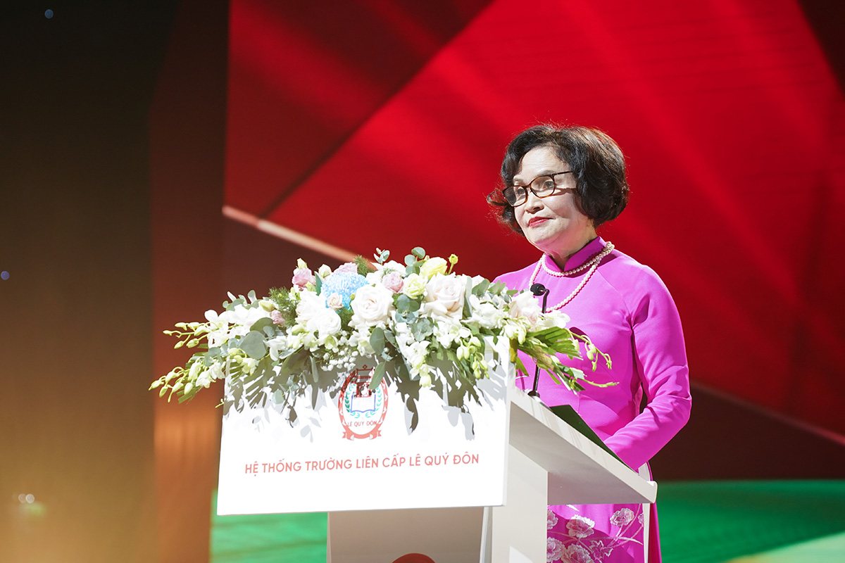 Phát biểu tại Lễ Kỷ niệm, Bà Đồng Thị Lan – Chủ tịch Hội đồng Trường đã xúc động nhìn lại chặng đường 20 năm với niềm tự hào sâu sắc, đồng thời khẳng định: thành công của Hệ thống Trường Liên cấp Lê Quý Đôn không phải là thành quả của riêng một cá nhân hay một tập thể đơn lẻ, mà là sự kết tinh của tâm huyết, trí tuệ và sự cống hiến bền bỉ của đội ngũ thầy cô giáo, cán bộ, nhân viên; là sự đồng hành, tin tưởng của các bậc phụ huynh; là sự nỗ lực phấn đấu, trưởng thành từng ngày của các thế hệ học sinh; và là sự ủng hộ quý báu của các cấp lãnh đạo, đối tác, bạn bè gần xa. Trong tầm nhìn phát triển mới, Nhà trường tiếp tục cam kết lấy chất lượng giáo dục và sự phát triển toàn diện của học sinh làm trung tâm, không ngừng đổi mới phương pháp giảng dạy, nâng cao chất lượng đội ngũ, xây dựng môi trường giáo dục nhân văn – kỷ cương – sáng tạo, đáp ứng yêu cầu ngày càng cao của xã hội và thời đại.