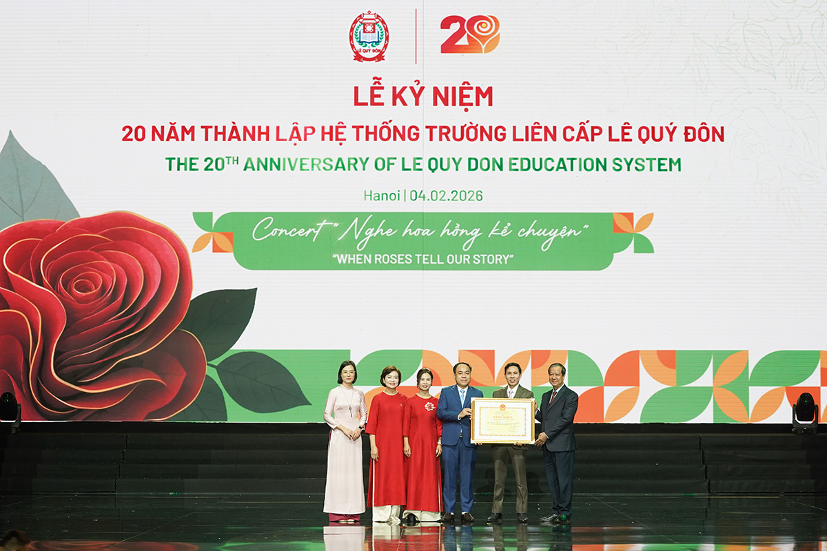 (LQĐ) – Ngày 04/02/2026, Hệ thống Trường Liên cấp Lê Quý Đôn long trọng tổ chức Lễ kỷ niệm 20 năm ngày thành lập và đón nhận Bằng khen của Bộ trưởng Bộ Giáo dục và Đào tạo. Buổi lễ là một dấu mốc đặc biệt, ghi dấu hành trình hai thập kỷ hình thành, xây dựng và phát triển không ngừng của một hệ thống giáo dục tiên phong của Thủ đô Hà Nội – nơi hội tụ của tri thức, nhân văn, đổi mới và khát vọng phụng sự xã hội.