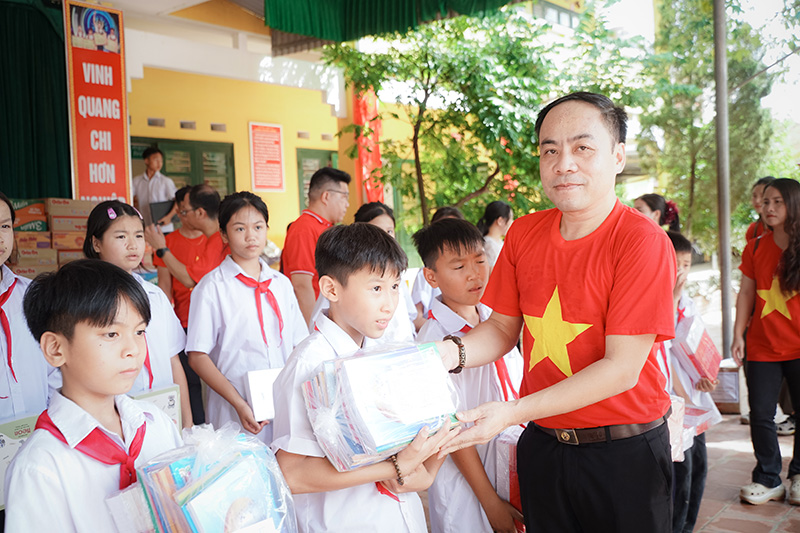 Các giáo viên và học sinh tại những ngôi trường được nhận quà đã vô cùng xúc động, bởi mỗi cuốn sách, mỗi cây bút là một niềm tin để tiếp tục hành trình học tập sau thiên tai.