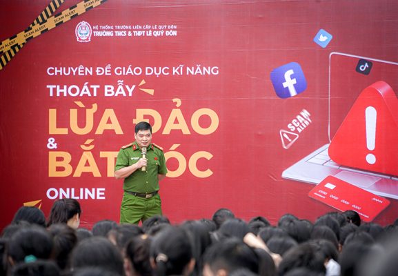 (LQĐ) - Nhằm trang bị kỹ năng phòng tránh cho học sinh trước vấn nạn mất an toàn trên không gian mạng, Trường THCS-THPT Lê Quý Đôn (Phường Từ Liêm, Hà Nội) đã phối hợp với các chuyên gia an ninh tổ chức buổi chuyên đề giáo dục kỹ năng với chủ đề: “Thoát bẫy lừa đảo và bắt cóc online.”