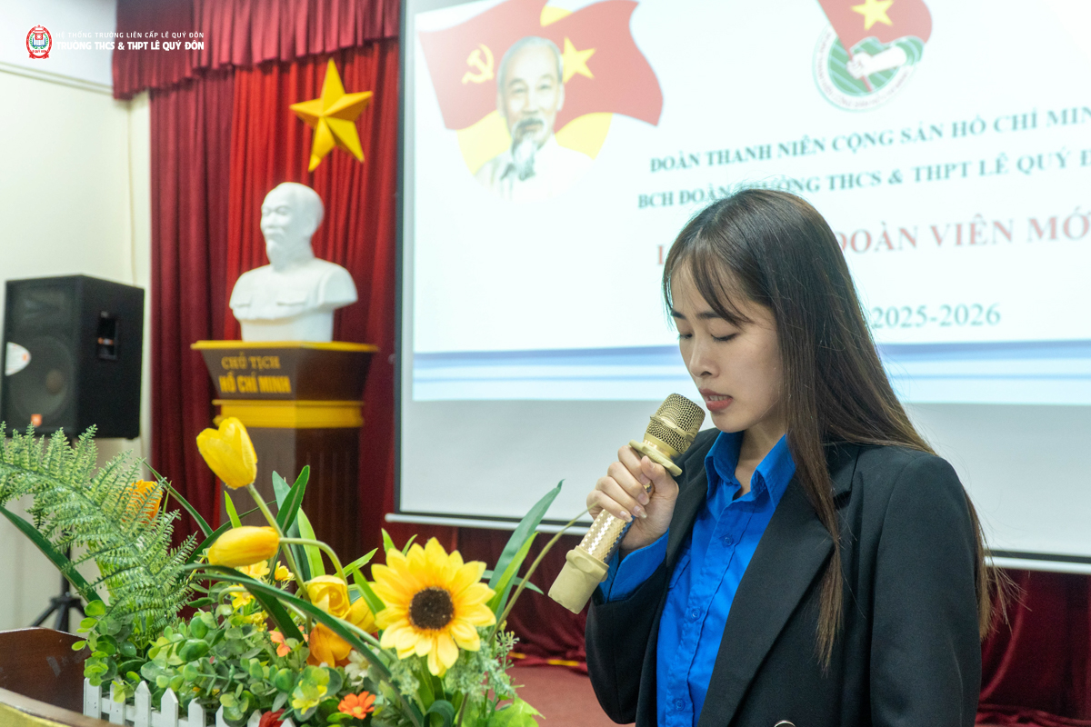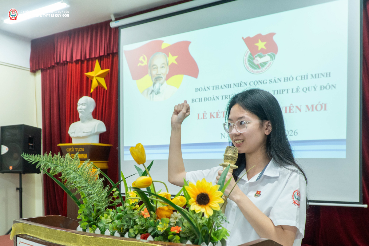 Lời tuyên thệ đầy xúc động của em Lê Phương Linh – lớp 10D0 đã mở đầu cho khoảnh khắc thiêng liêng nhất trong Lễ kết nạp Đoàn viên đợt 2/2026 tại Trường THCS–THPT Lê Quý Đôn.